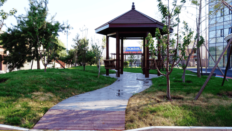 :大家的家北京朝阳城心社区4000平米日式风格庭院,配套园林小品、健身器材、步行走道、露天凉椅,毗邻朝阳公园,周边绿植环绕。房间配备健康检测一体机、智能床垫,实时监测健康状况,12000元/月自理房型即可享受庭院景观与智能设施,环境优势显著。
